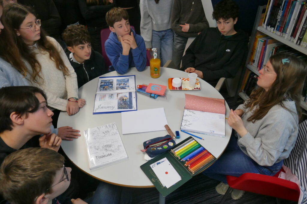 Et puis… les élèves savent maintenant qui viendra au collège mi-mars rencontrer une partie d’entre-eux : l’autrice de la BD Tisseuse,Léna Canaud… également présente au Salon Penn Ar BD de Quimper.