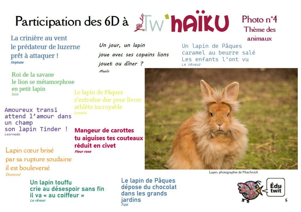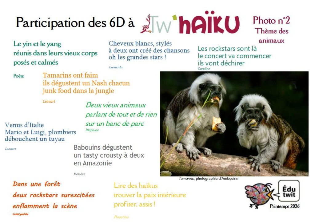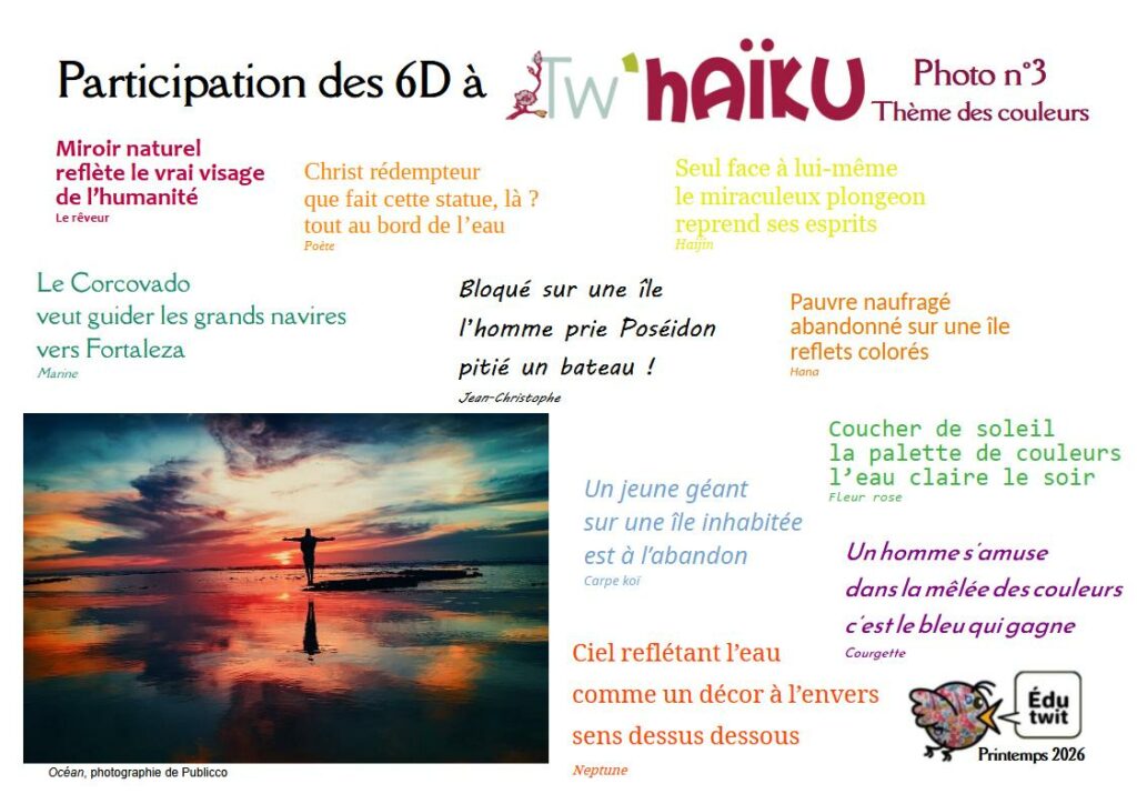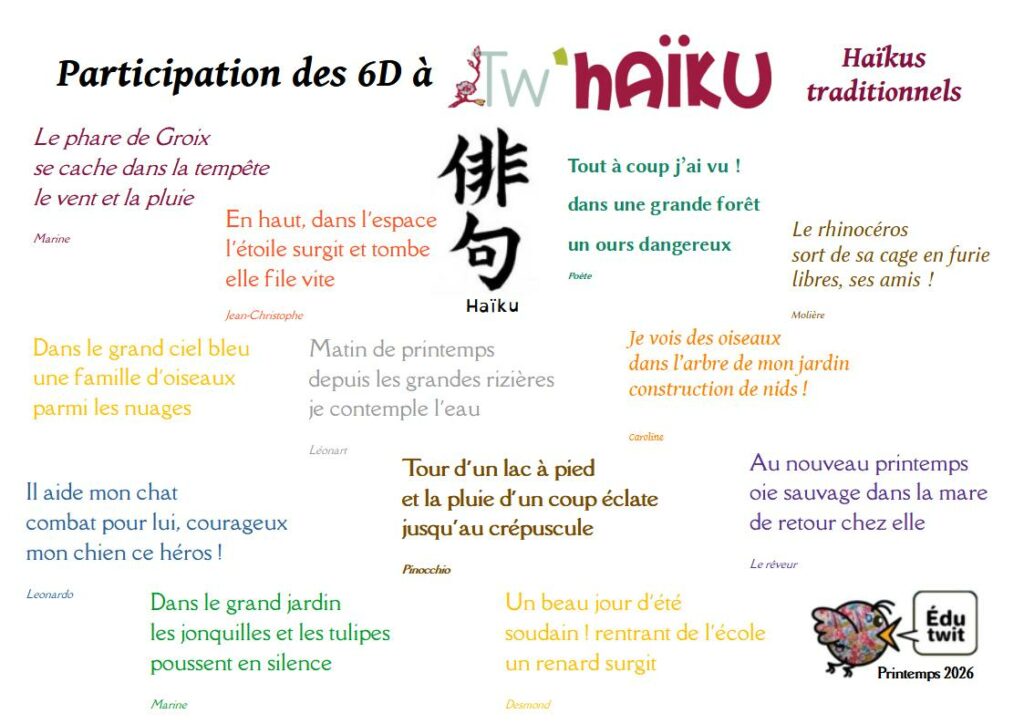 Petit aperçu du travail des 6D… et lien vers le recueil officiel dans lequel la classe est très présente. Merci encore à Marie Sartori pour l’organisation de cette opération annuelle car …