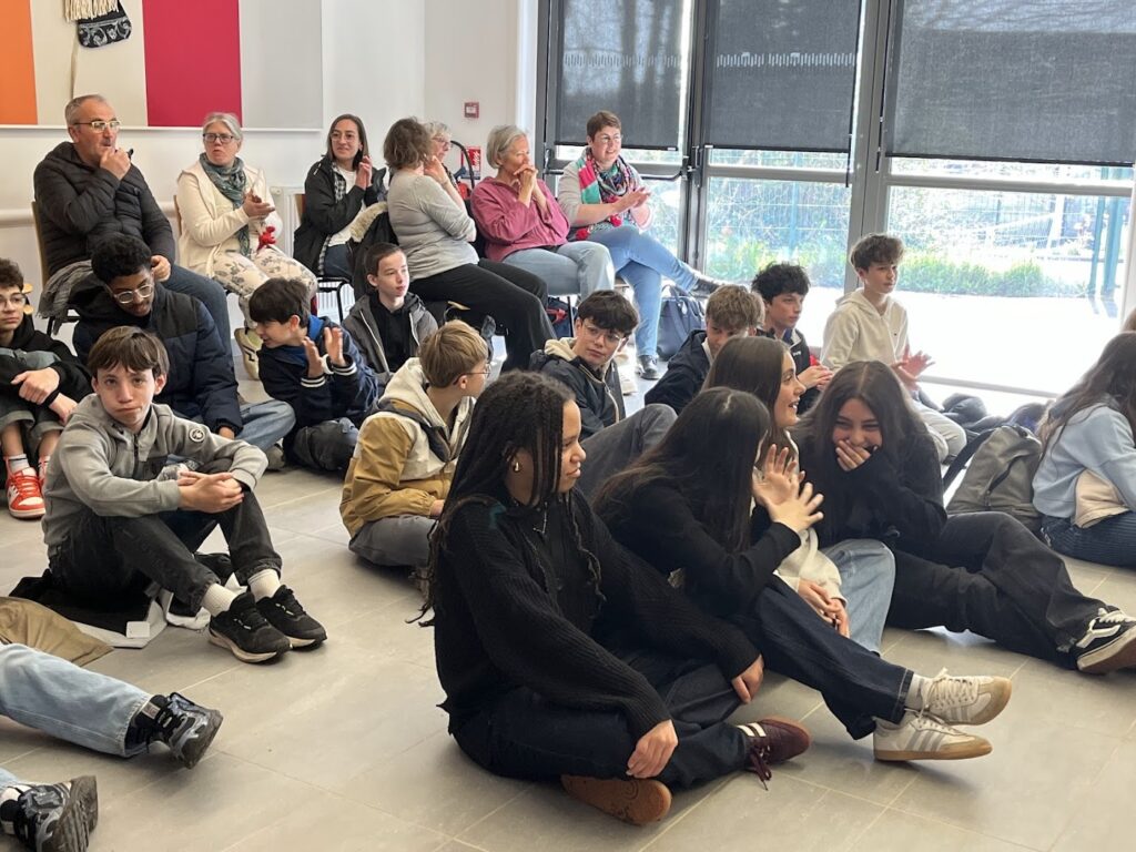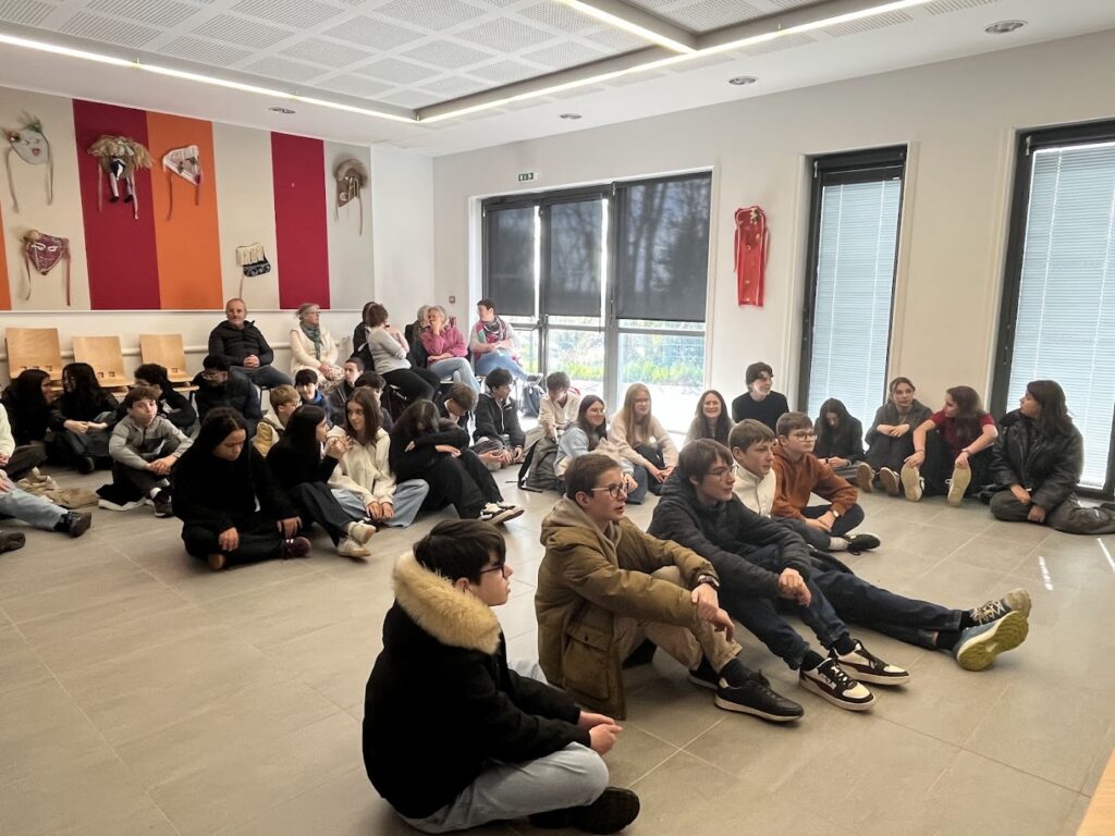 – aux personnels ayant embarqué les élèves avec eux, notamment les enseignantes de français, mais aussi ceux de maths, espagnol, arts plastiques, EPS, anglais, physique, allemand, sans oublier AESH et AED ! Une vraie équipe ;