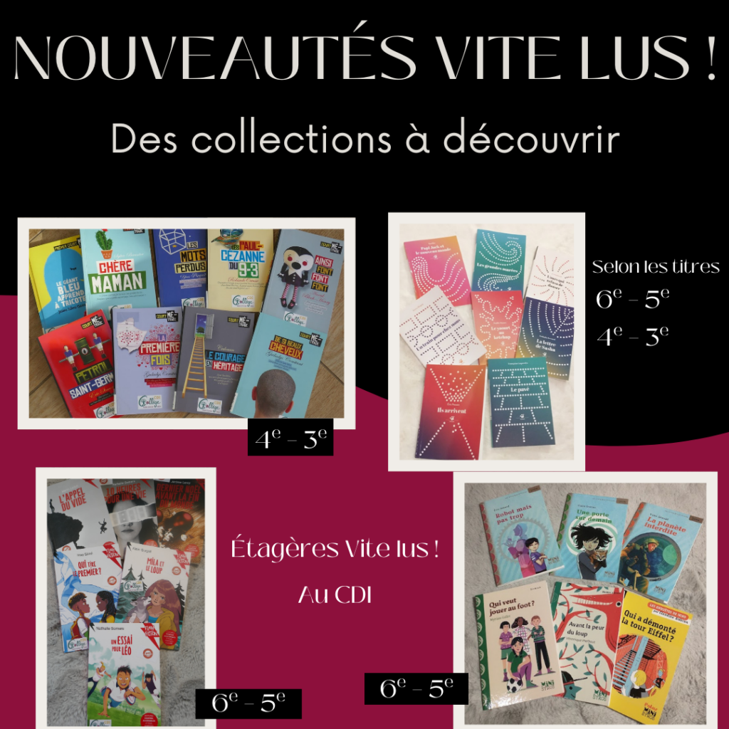 Dans le catalogue en ligne https://www.toutatice.fr/pmb/opac_css/?rne=0290019N retrouvez les Vites lus dans les sélections :